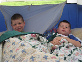 Our Memorial weekend started out with a camp out. We didn't even have to go very far, just to the backyard. We were going to sleep under the stars until the forecast called for scattered showers and decided a tent would make things better. So I went and bought a tent. Set it up and got out the sleeping bags, pillows, and portable DVD player. We cooked popcorn and roasted marshmallows. It was a great night except I had to hear Curtis snore and Coltin Grind his teeth. (which I didn't even know he did) The kids thought it was awesome!! (mom and dad had to take a nap later)